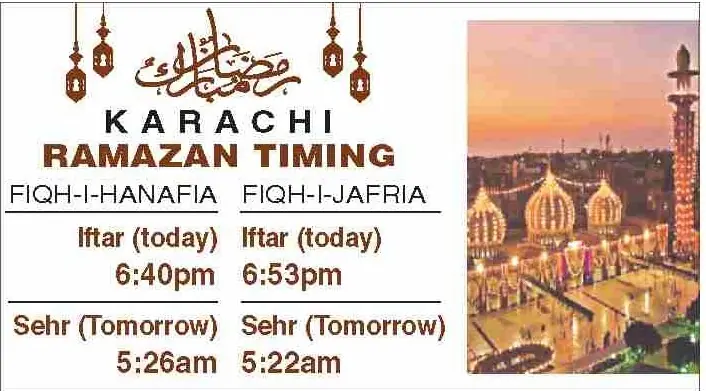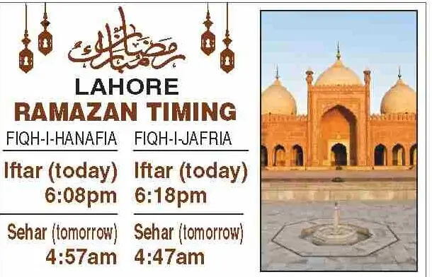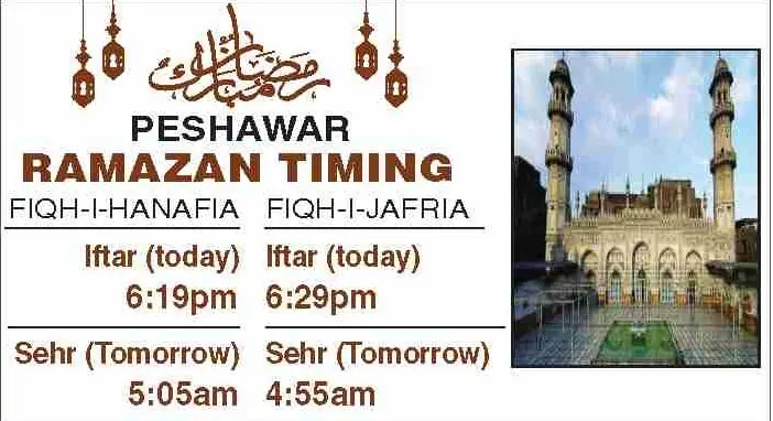 Times for today’s Iftar (Ramazan 21) and tomorrow’s Sehri (Ramazan 22) for the federal and provincial capitals are listed below: